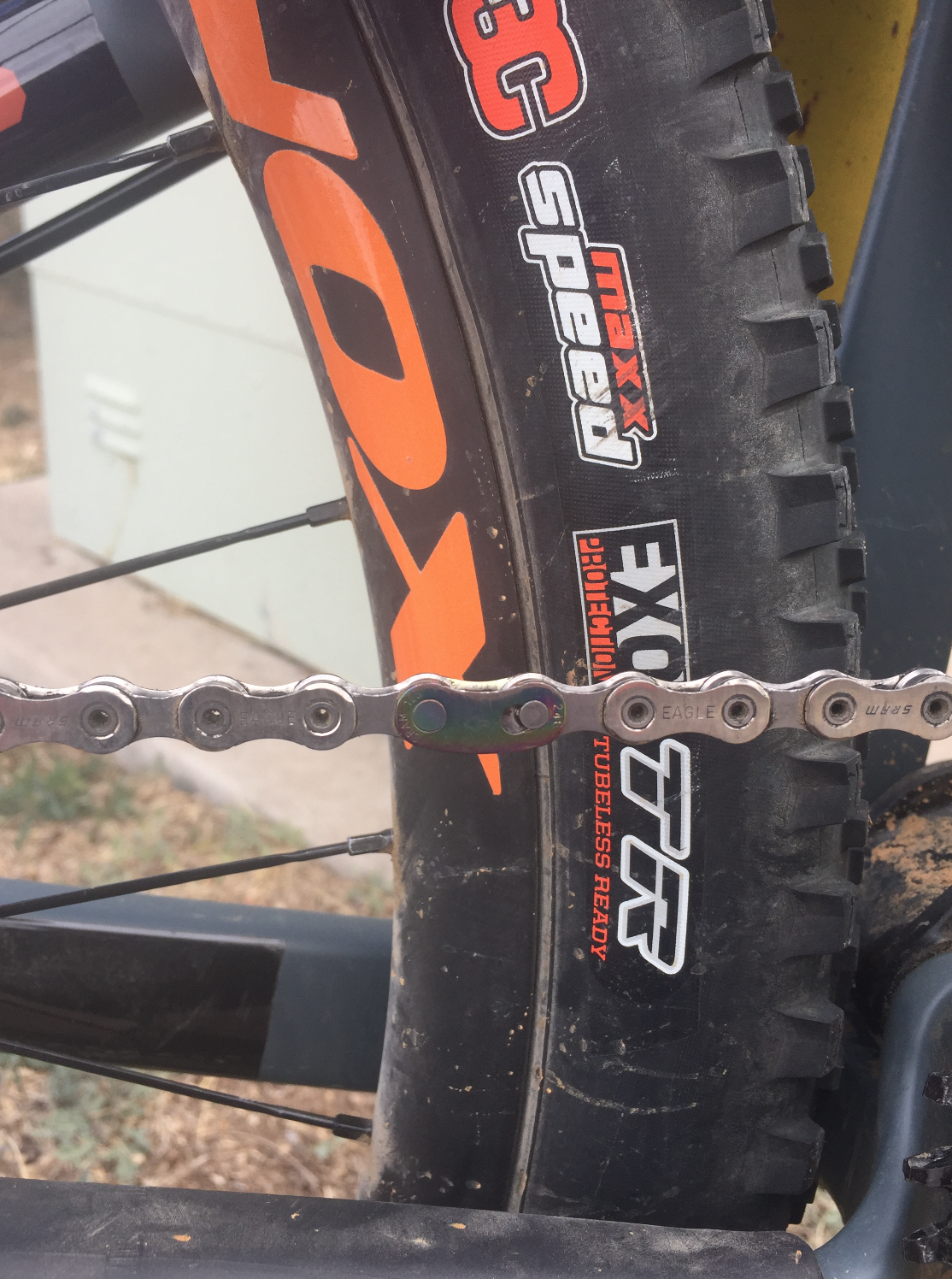 I pedaled out of town towards the Tiger Mine trailhead which was the southern terminus of the Black Hills Passage. Drive train was acting super clunky doing a weird ghost shift every couple of pedal rotations. I thought maybe it just needed a little adjustment so I turned the barrel to the extent both ways with no improvement. I pulled off the side of the road to try to diagnose. The group I had picked out for this bike was SRAMs new 12 speed Eagle setup which I had really liked on the few rides I had gotten in before this trip. Totally frustrated not being able to figure out the problem I finally noticed something as I was running my hand across the chain. The new 12 speed quicklink which holds the two ends of the chain together has an arc in it presumably to give it a better ride over the tiny 10 tooth small cog on the cassette. Given its shape, you can only properly install it in one direction. I didn't do that. I tried separating the link with a pair of leatherman pliers but ended up having to push the pin out and replacing with a new quicklink in the correct orientation. Back on the road, no more clunking.