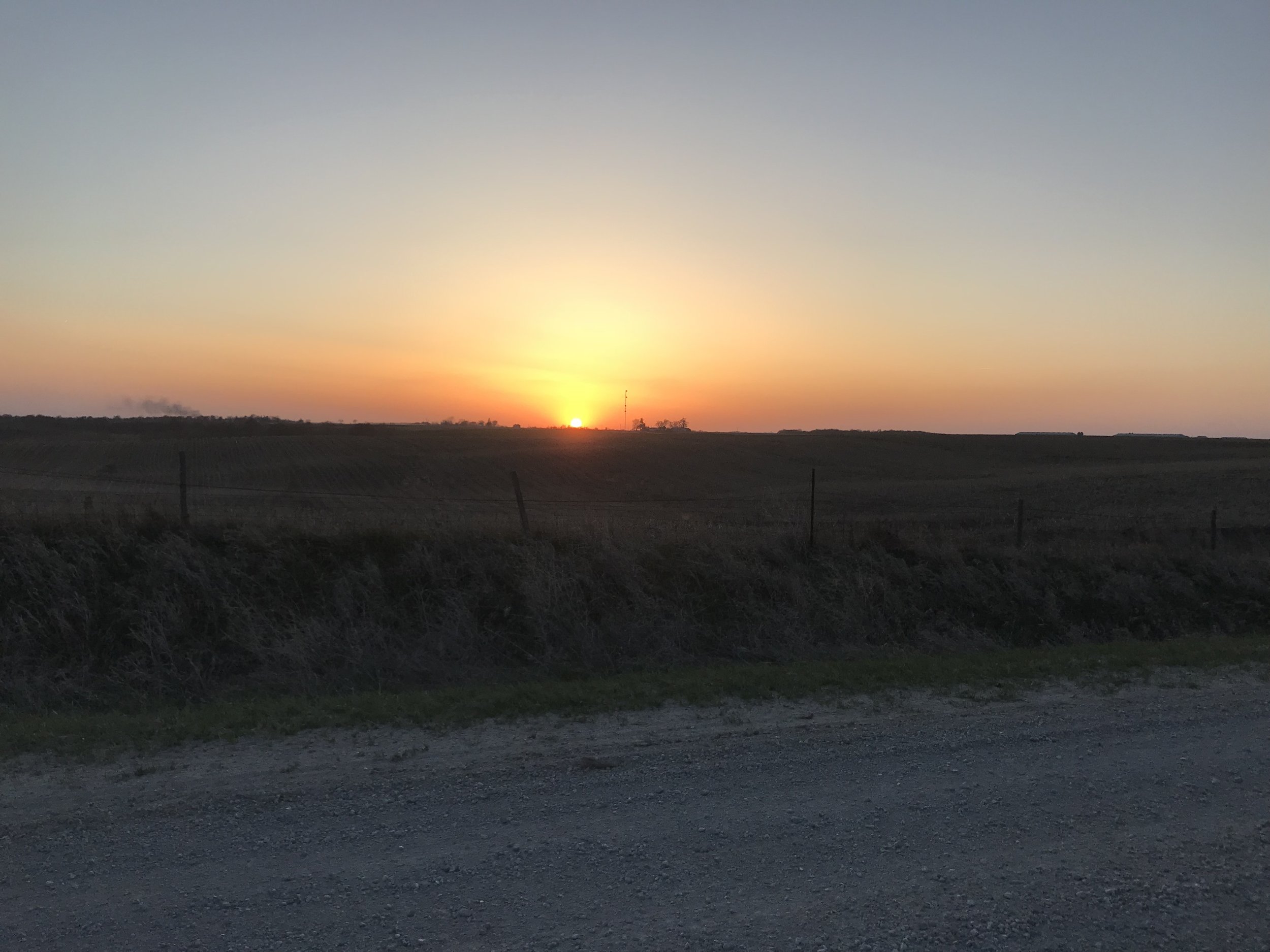 The next segment out of Kalona my stomach was a little sour after stuffing it with more food and quite frankly I was getting a bit bored of the monotony of the day. Same gravel roads, chicken/pig farms, and stubbled corn fields.....over and over and over again. This got me into a bit of a low spot but what really helped me through it was to look forward to nightfall which was just a few hours away.
