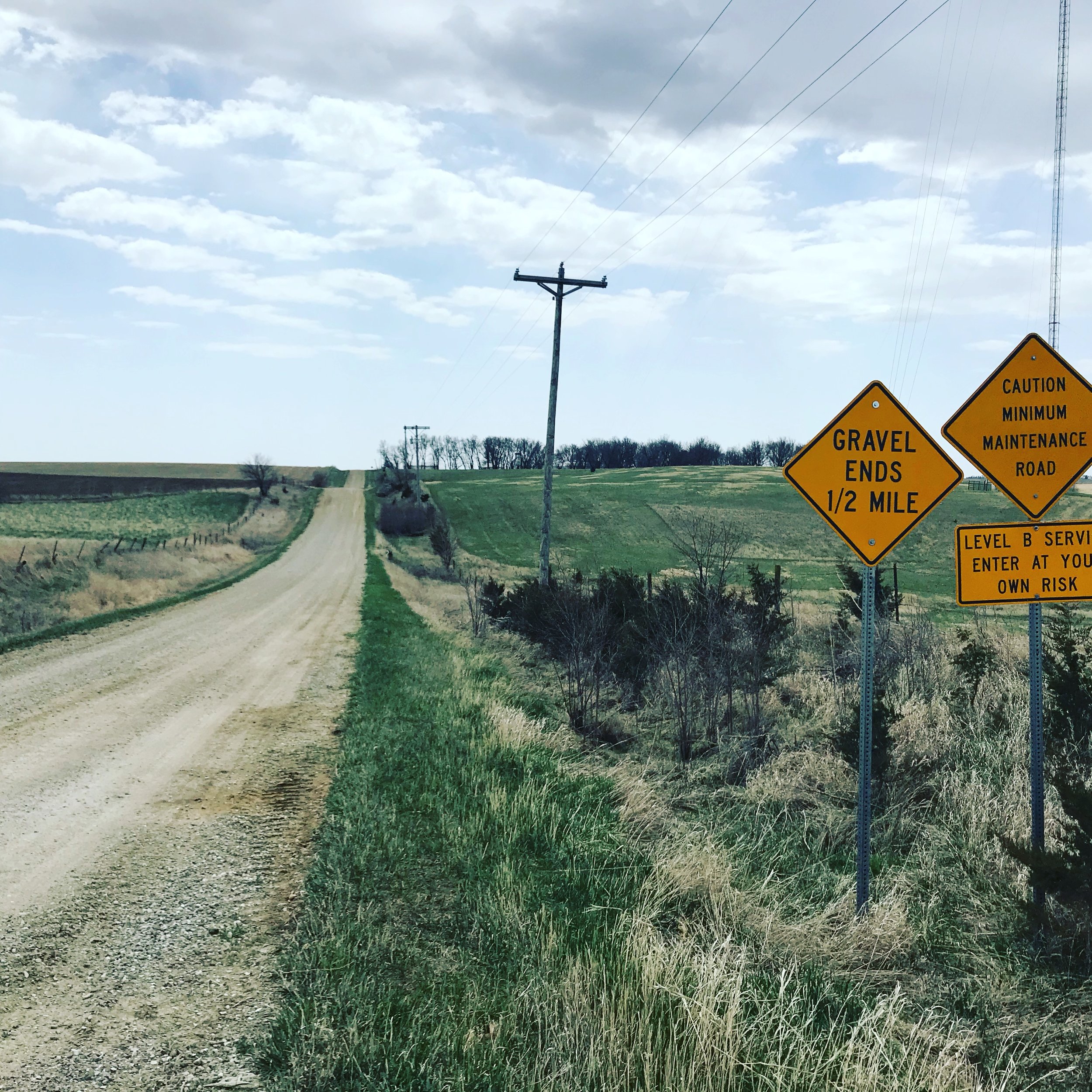 As the morning wore on and I made my way east through the massive rolling grades of Jasper county, the wind started to get furious. I made a right turn heading directly into the 25+ mph wind and saw my average speed drop from about 15 to 4 mph. I got as low as I could and just felt that I couldn't make any significant progress against the stiff wind that would gust and try to push you off the road. When changing directions back to the east it was difficult to stick a line in the loose gravel and my calculations with this new much slower speed were starting to play games with my head.