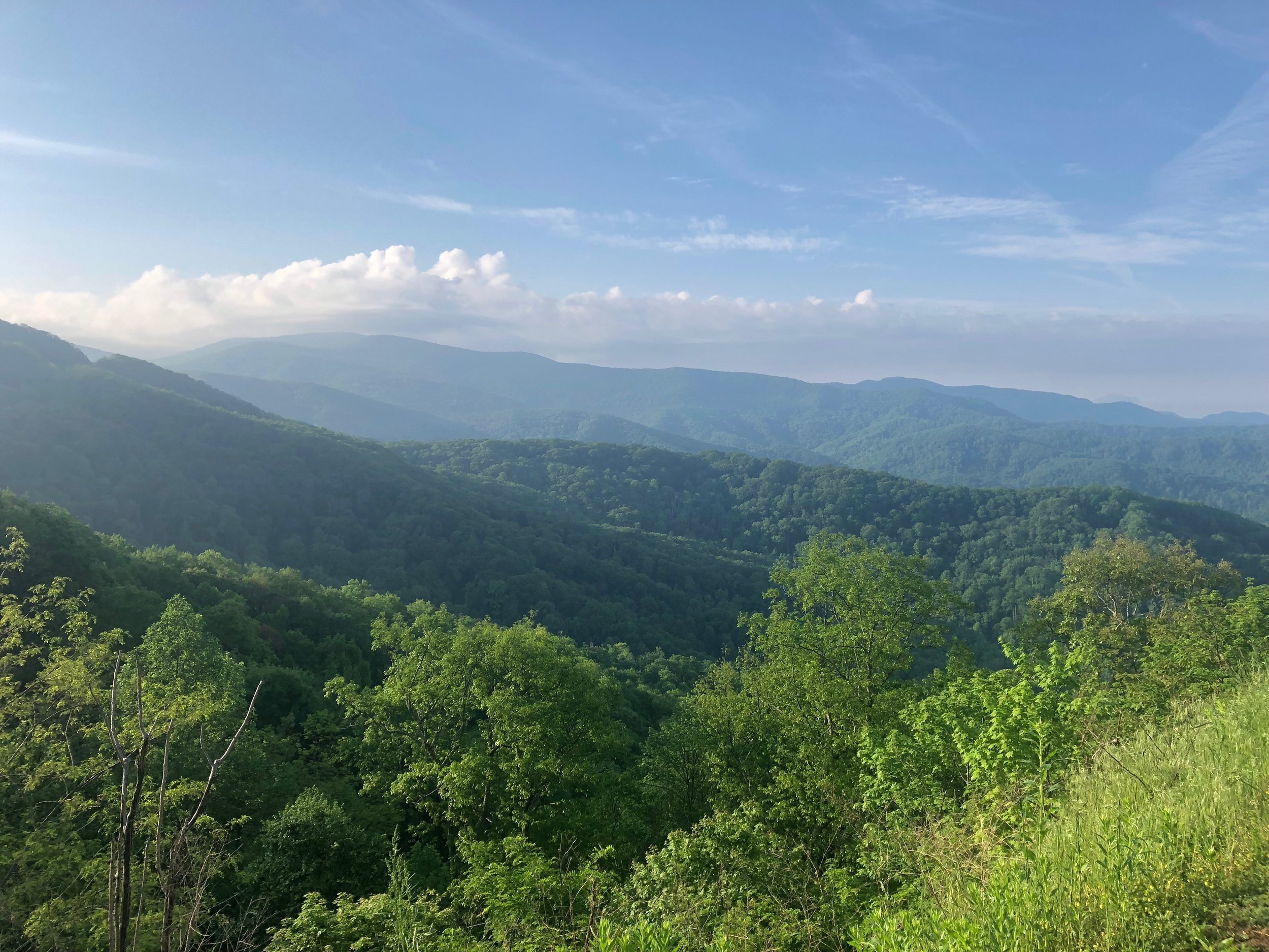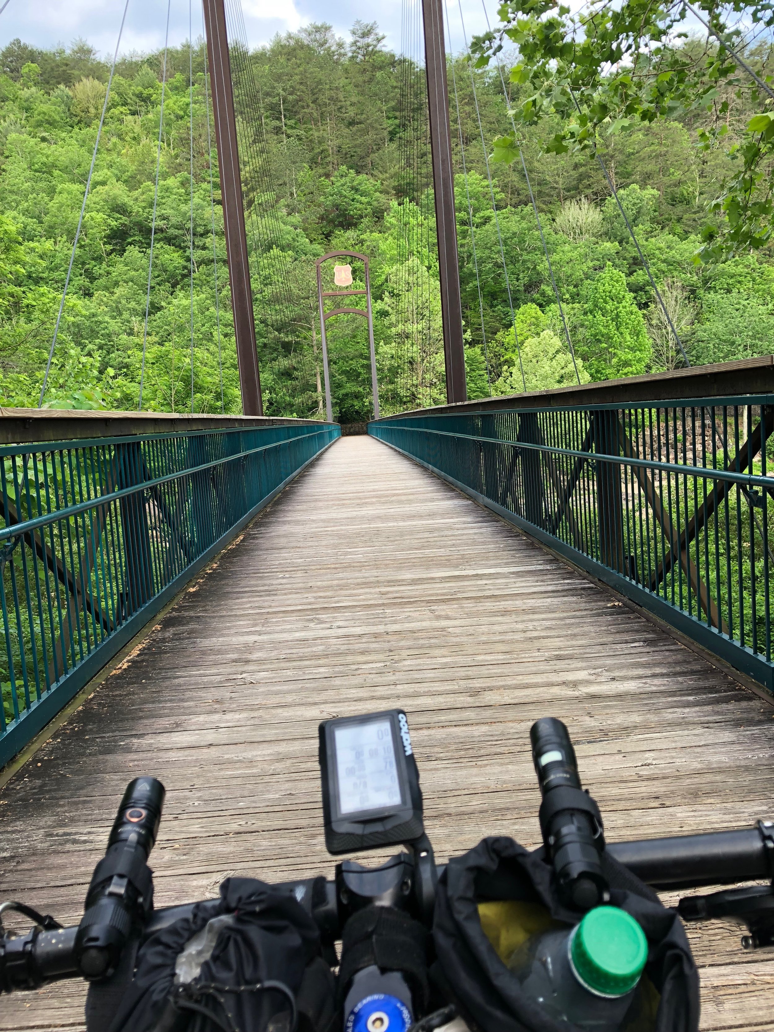 At about 5 am I woke to my alarm. I couldn’t believe it was really time to get up. Just as I was about to give in to the alarm, I heard someone rolling through the campground. I didn't want to yell at them in the campground and wake everyone up so I didn't. Later found out it was Brent Nelson. I went out of the camp area and discovered the whole other camping area where I should have been which had pavilions, and bathrooms etc. All the major luxuries in life and was disappointed that I hadn't ridden far enough before finding this area the night before (which is where I’m Jen and Justin had to have camped with Cycling Sasquatch). The trails were fun and smooth around the lake leaving IB, allowing me to enjoy a false sense of what was ahead before coming upon the big, bad Cherohala Skyway. I would rather climb Hog Pen twice! It was long and steep and never-ending, … a slow grind all the way to the top. But hey, here's the good news: Beautiful overlooks all along the way! It had absolutely amazing views. I caught up with Brent Nelson along the way on that climb, as well as Derrick Bowerman, … they were taking a minute to smell the roses and take in the beautiful overlook. That's when I found out that it was Brent who had rolled through the camping area where I was camped earlier. I stopped as well and chatted for a few about the route so far, how we were feeling and what the upcoming plans/goals were. Derrick was going to try to get to Green Cove and then was out due to some "areas" that were too far gone. Brent’s plan was to get to the cut off that goes back to flip flop at the 154-ish mile and cut off from there. I was planning of course to finish the route in it's entirety. We all finally decided it was time to cut the lolllygagging and get to work. There was still lots of climbing to be had so we were on our way again.