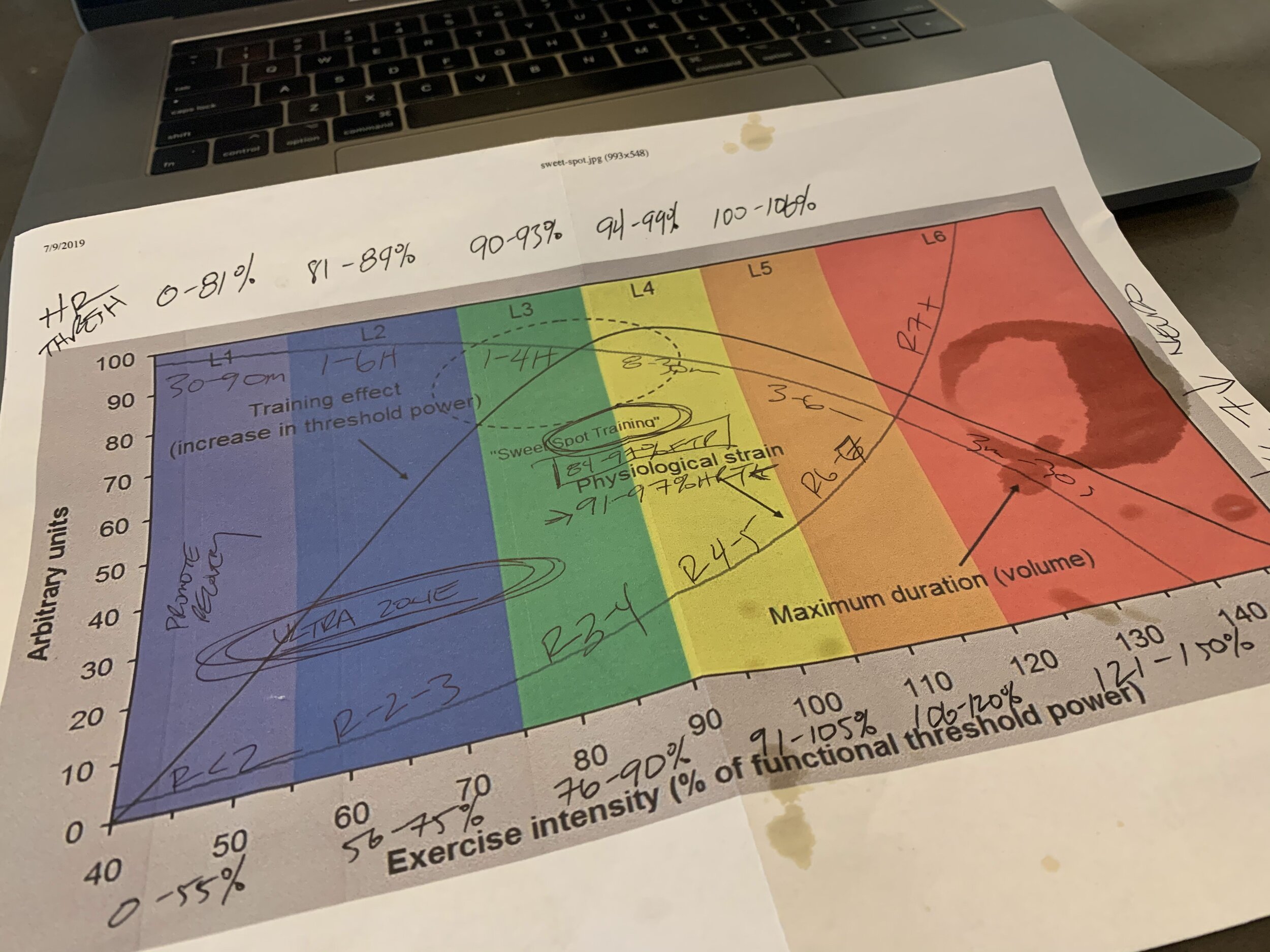 This is my tattered version of power zones that I have been writing handwritten notes on for a few years. Finally decided to convert it to an updated version with threshold heart rate and RPE. Mash-up from Coggan/Allen, Friel, LW Coaching, and my experience