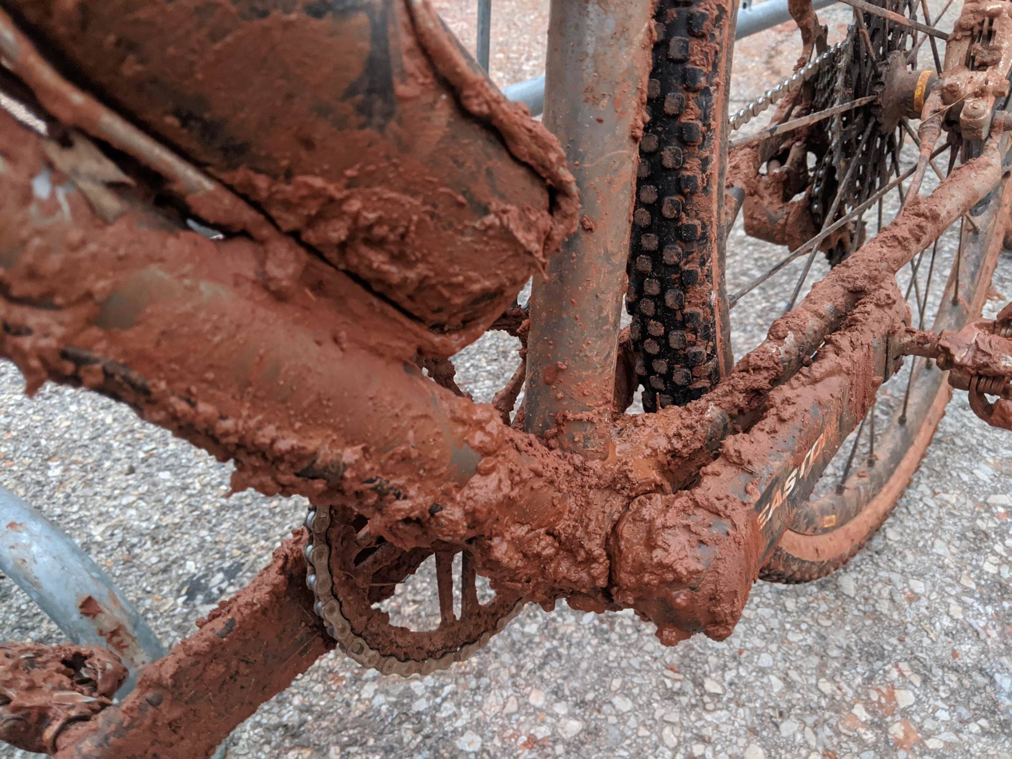 Different tires. I ran Rene Hearse Steilacoom 38s. They served me very well in Alabama mud. But they would not shed the Oklahoma mud. If I do it again, I’ll probably run WTB Riddlers or Terravail Cannonballs.